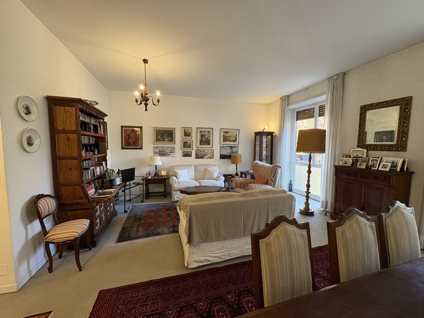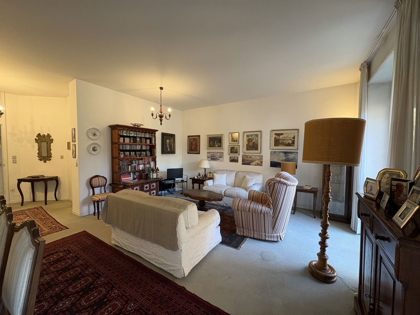 L'appartamento cosi disposto: doppio ingresso, doppio soggiorno, cucina abitabile, tinello, due camera da letto e due bagni.