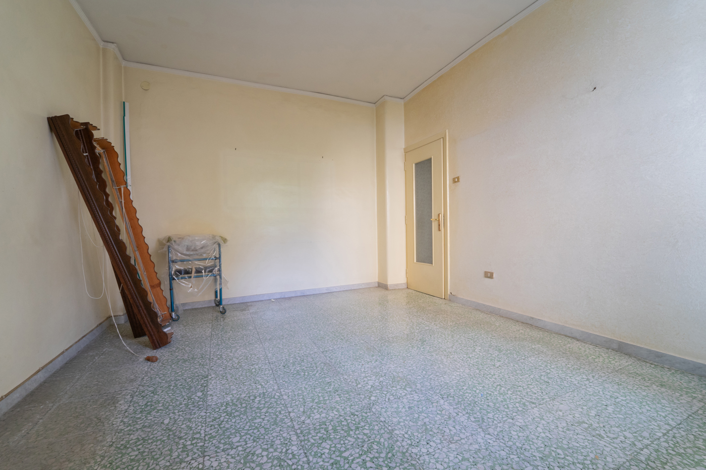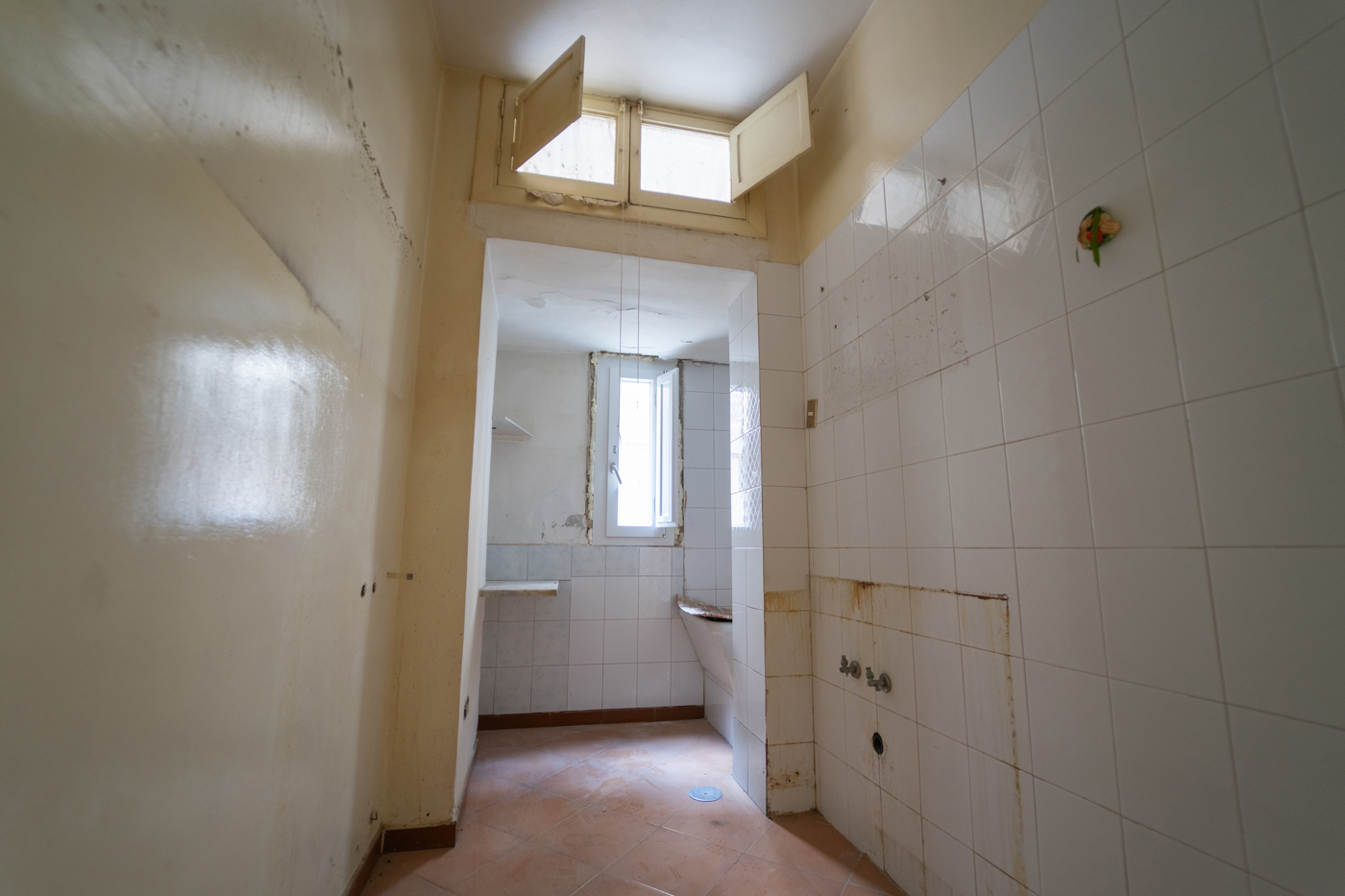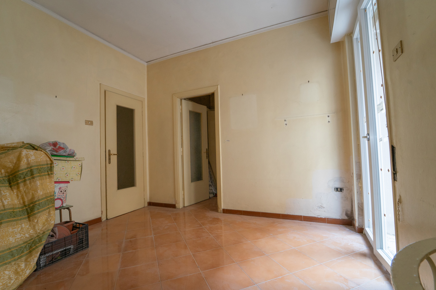 Accediamo alla soluzione, da ristrutturare, la quale ci presenta dinanzi un lungo corridoio da poter arredare con quadri e vasi con fiori per rendere latmosfera accogliente fin da subito.