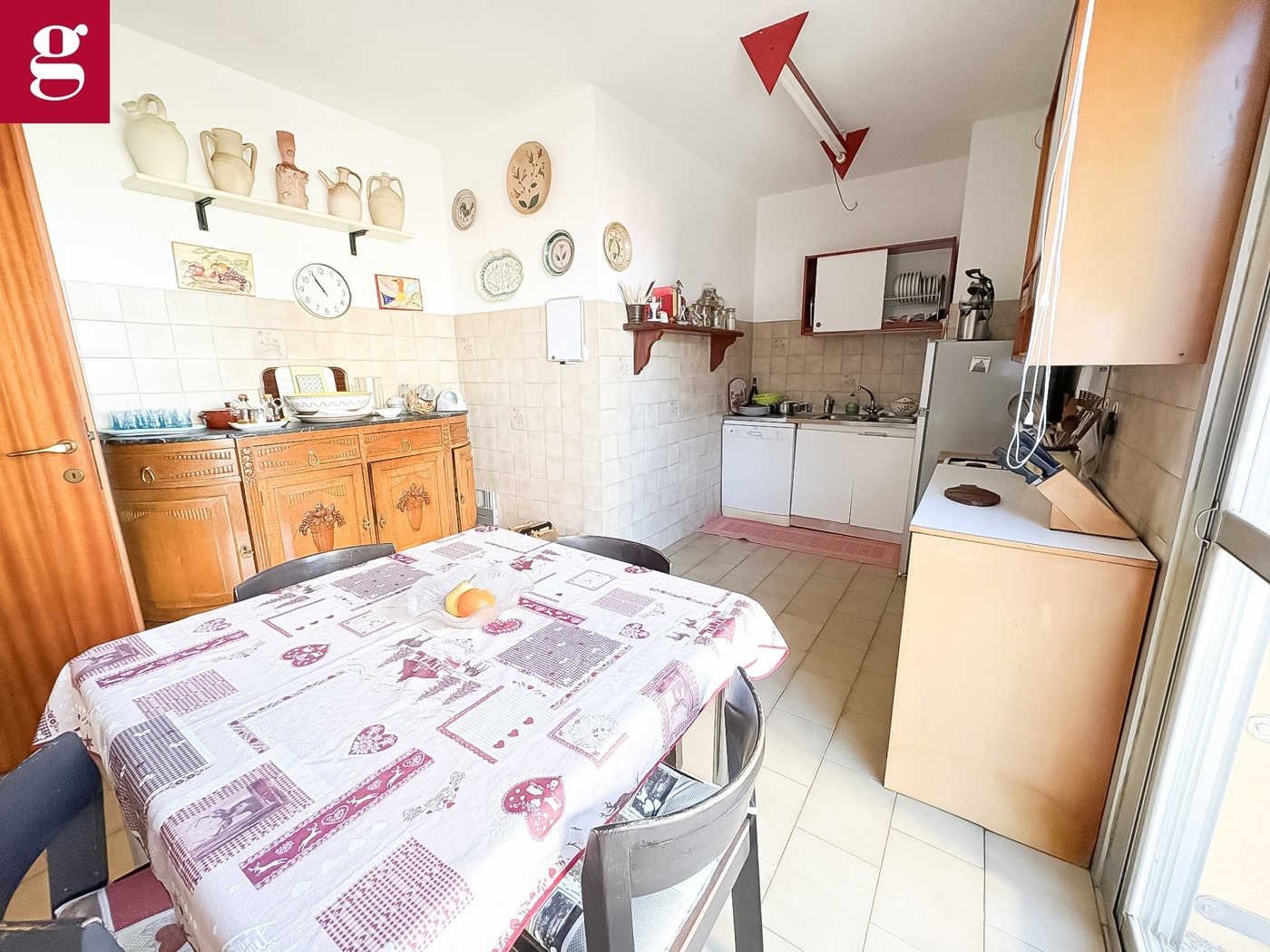 Rientrando nella zona giorno e proseguendo frontalmente si accede alla cucina abitabile, spaziosa e ben organizzata, impreziosita da una splendida doppia porta finestra che assicura grande luminosit allambiente.