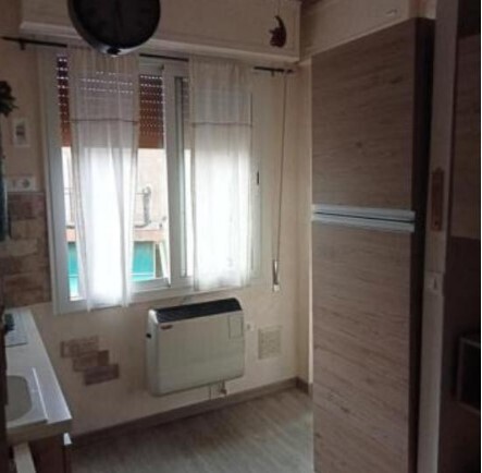 L'alloggio è composto da tre vani: ingresso/disimpegno, camera, bagno, soggiorno con angolo cottura, balcone sul lato sud con accesso dalla camera e dal vano cottura.