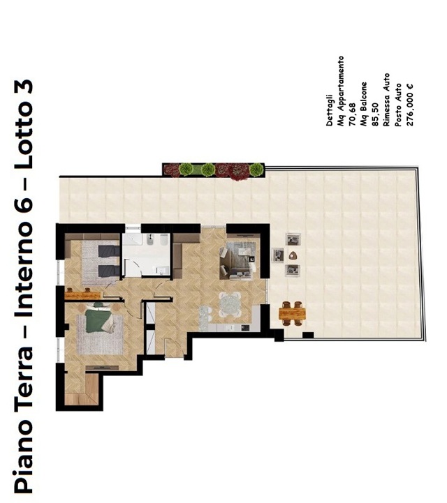Ti proponiamo rifinito e moderno appartamento di 3 vani+ accessori al Piano terra.