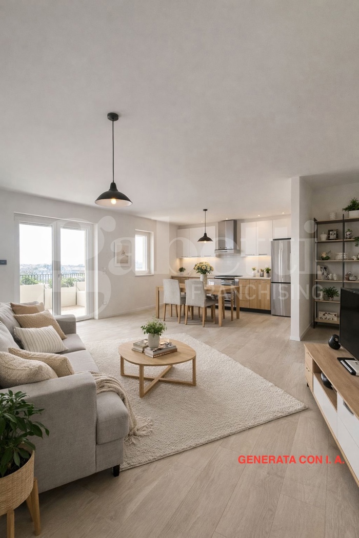 L'immobile composto da ingresso, ampia zona living con cucina a vista con affaccio su veranda, disimpegno, camera matrimoniale con bagno in camera, cabina armadio e balcone, cameretta, ripostiglio/lavanderia.
