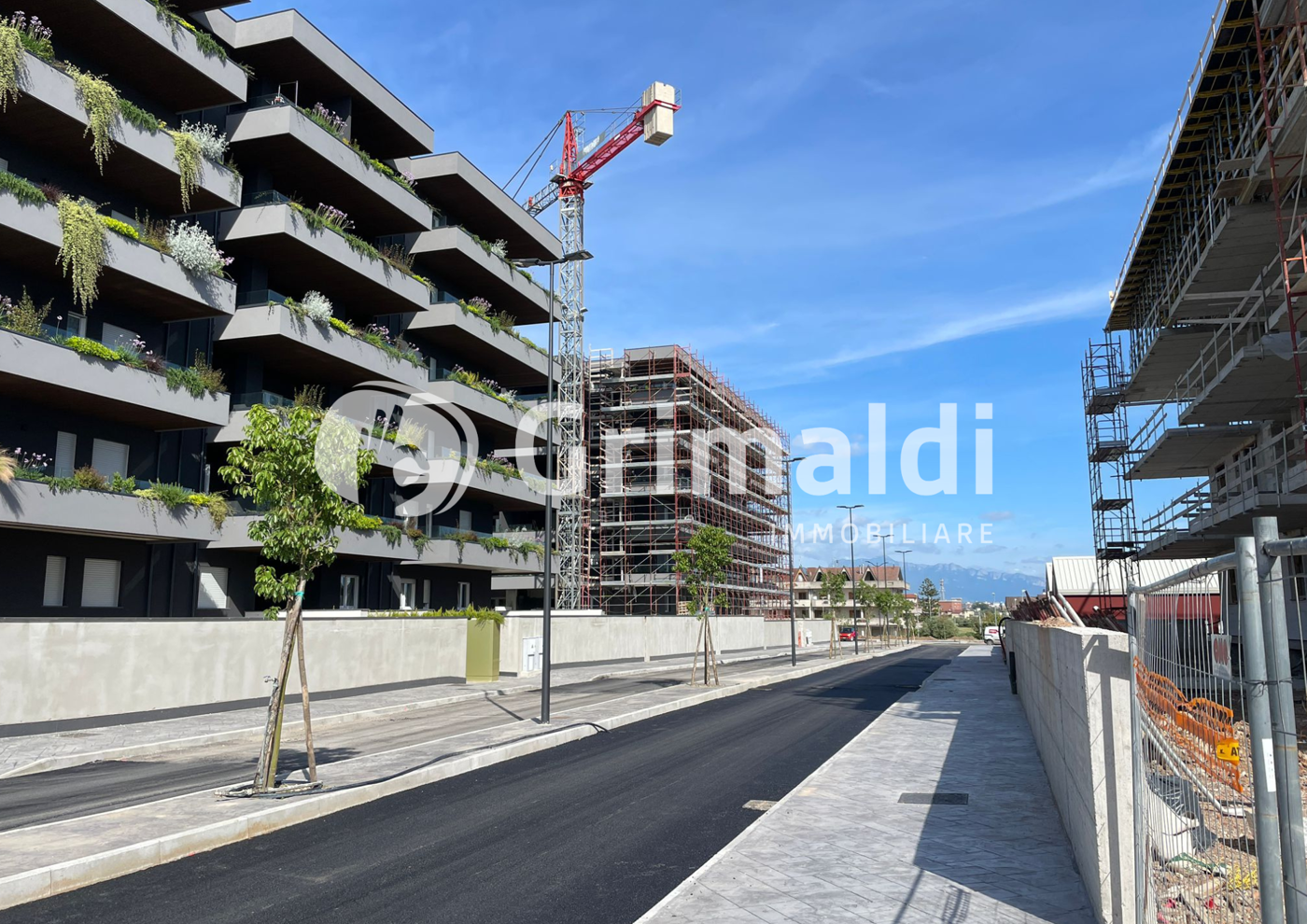 Si apre su un grande soggiorno con cucina in stile open space, disimpegno con angolo lavanderia, due camere da letto matrimoniali e due bagni.