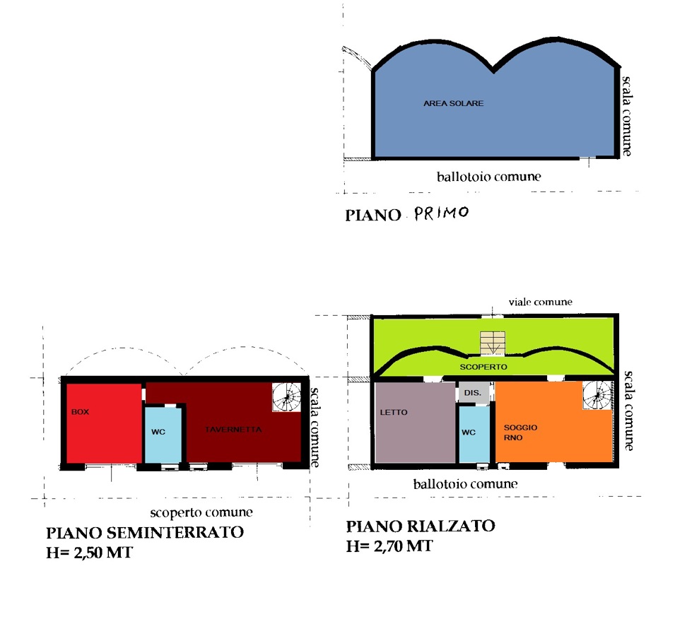 L'abitazione composta da due bilocali comunicanti tra loro tramite una scala interna, ma pu essere trasformata in due appartamenti, avendo entrambi gli ingressi indipendenti, oppure box/taverna al piano seminterrato e abitazione al piano rialzato.