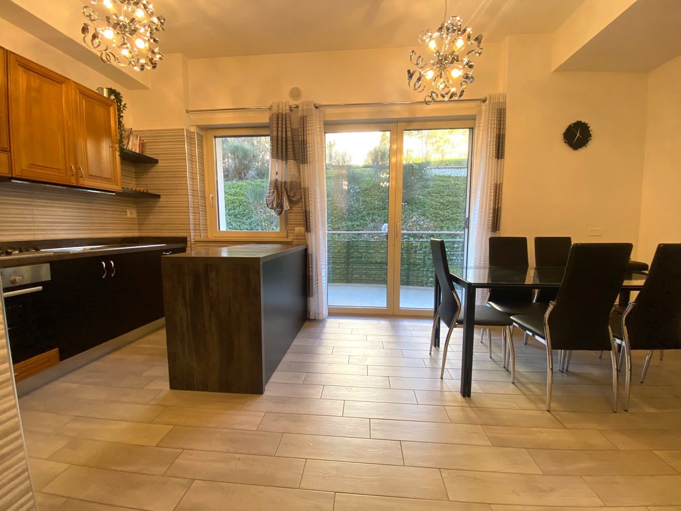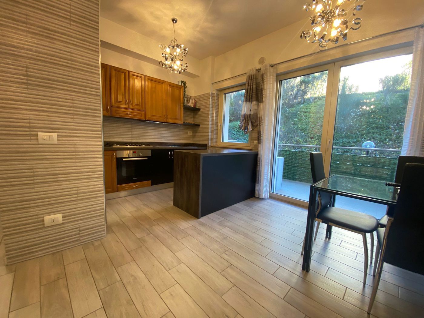 Limmobile, situato in un contesto tranquillo e riservato, cos composto: Ingresso su accogliente soggiorno con angolo cottura e uscita sul balcone con affaccio sul verde, due camere da letto matrimoniali luminose e ben dimensionate, doppi servizi, uno con vasca e laltro con doccia, ripostiglio/lavanderia con attacco per lavatrice.