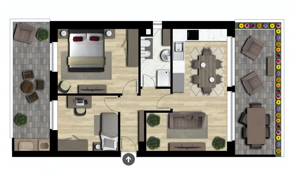 Lappartamento, con una superficie di circa 81 mq, stato progettato per ottimizzare ogni spazio e garantire una distribuzione funzionale degli ambienti.