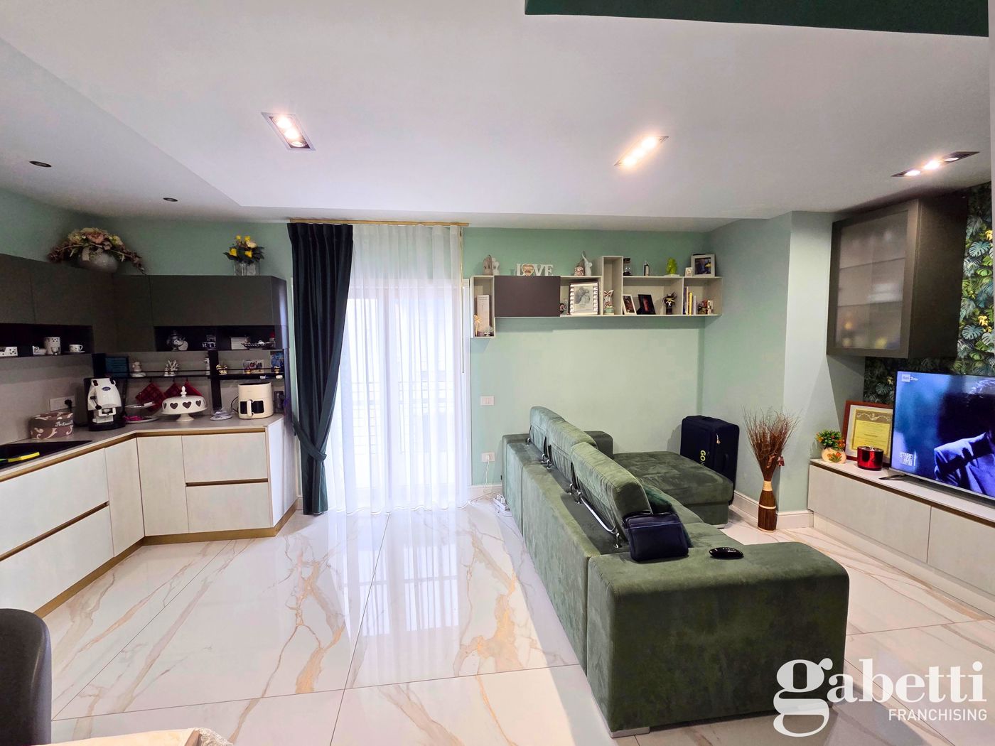 Elemento distintivo della propriet lo splendido terrazzo di copertura di circa 70 mq, gi attrezzato con cucina e servizio, perfetto per momenti di relax e convivialit.