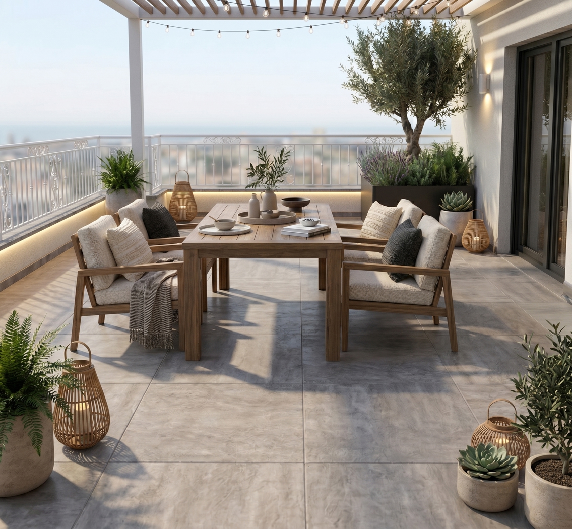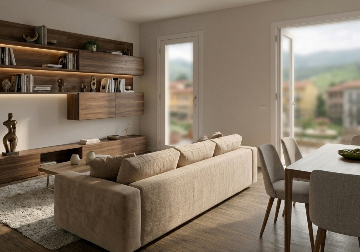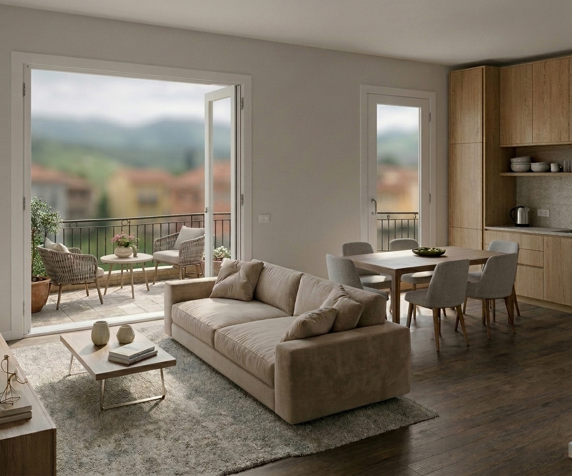 Il vero valore aggiunto della proposta sono gli spazi esterni: le terrazze ed i balconi gi arredati e muniti di pergolato abbracciano l'appartamento offrendo pi ambienti outdoor dove godersi il panorama, pranzare all'aperto e trascorrere momenti conviviali in ogni ora della giornata, dal caff del mattino alle cene estive sotto il pergolato.