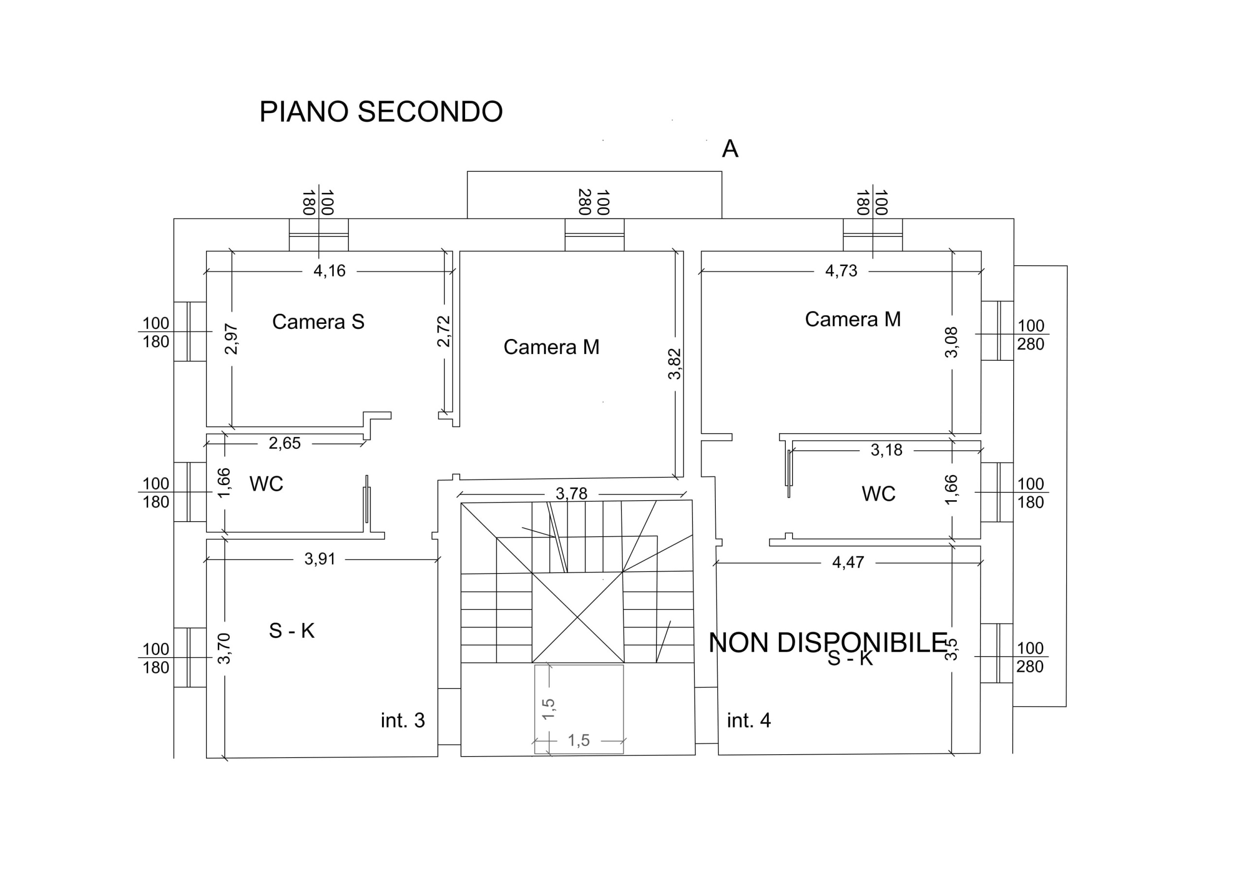 E' composto da ampia zona giorno con angolo cottura a vista, disimpegno, camera matrimoniale completa di bagno privato e piccola cabina armadio, camera singola, balconi e bagno con box doccia.