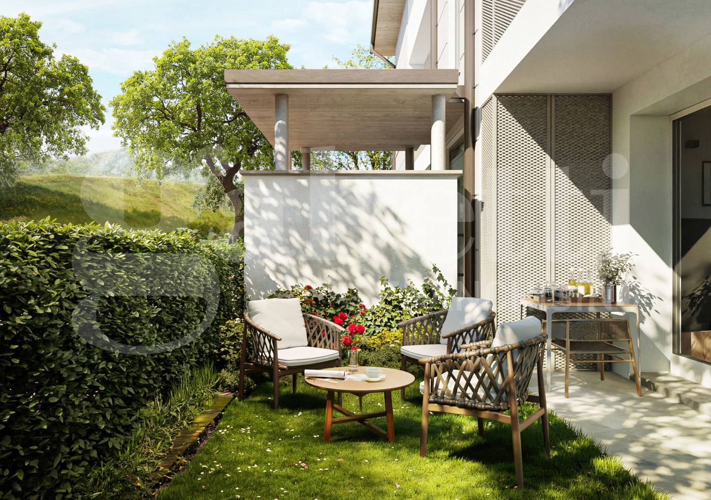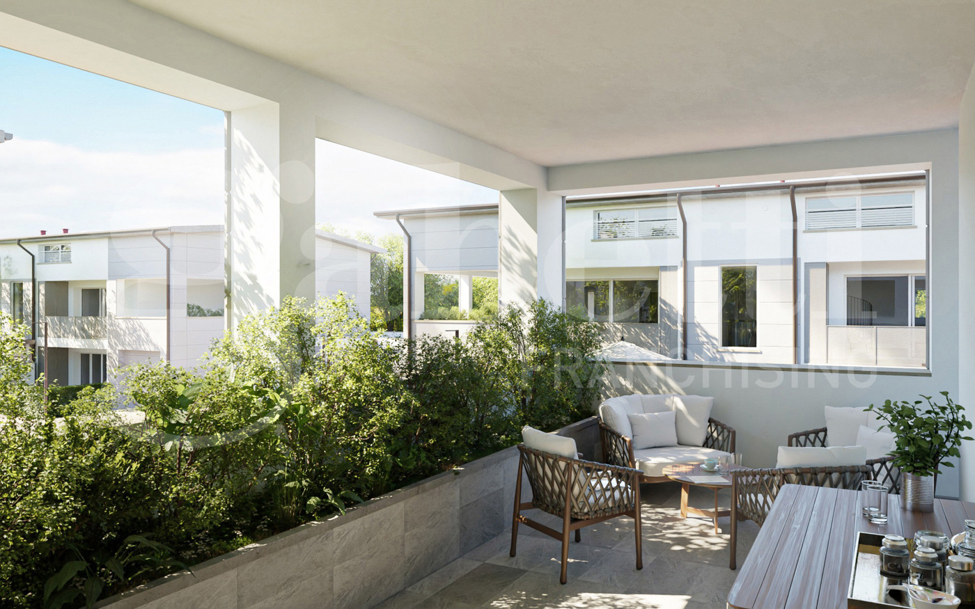 Nuovo insediamento all'interno di un complesso residenziale con ampi spazi verdi condominiali, composto da 32 unit immobiliari, con giardini privati e/o terrazze panoramiche.