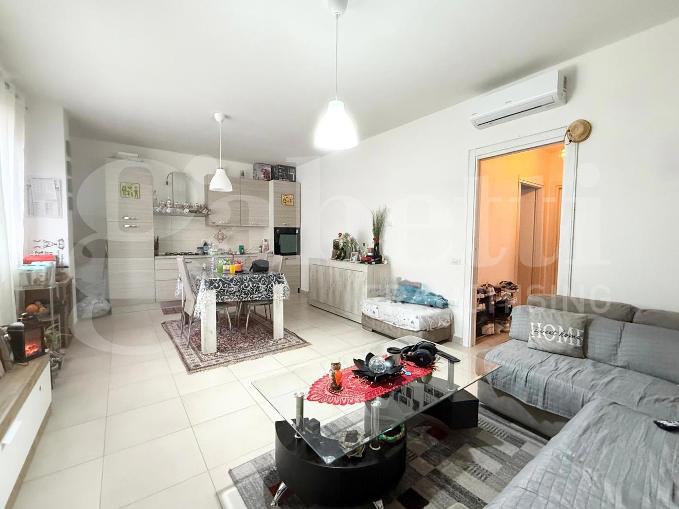 Trivano al piano terra con posto auto Sinnai Zona Via Roma - Ingresso paese Gabetti propone in esclusiva ampio trivano di 70 mq sito al piano terra di un condominio di sole 5 unit abitative edificato nel 2021. Limmobile composto da un ampio soggiorno, angolo cottura a vista, disimpegno che separa la zona notte composta da camera matrimoniale, camera singola e bagno con doccia collegato alla veranda dove troviamo la zona lavanderia.