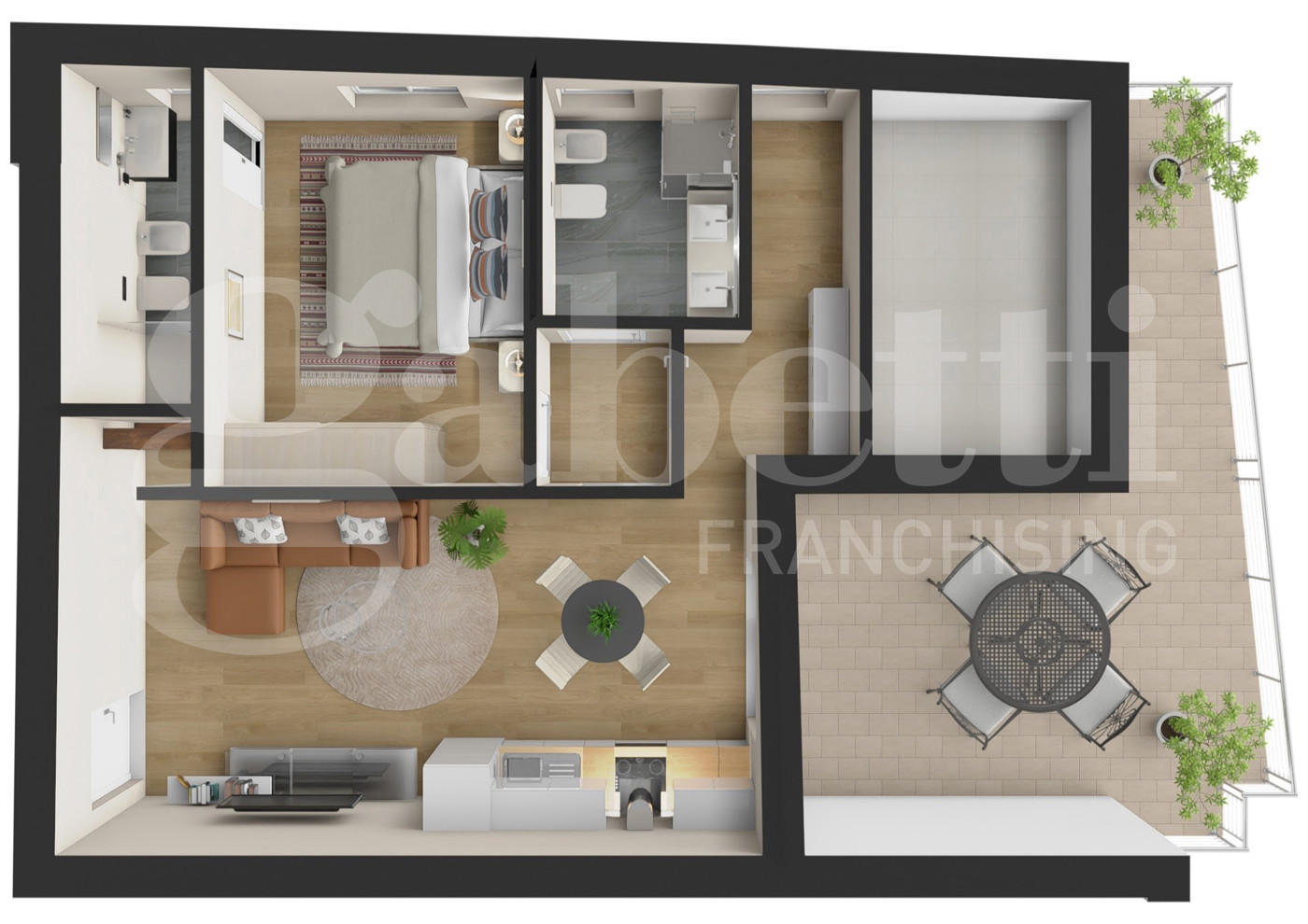Gli ambienti luminosi e ben distribuiti sono progettati per offrire un'esperienza abitativa armoniosa e confortevole.