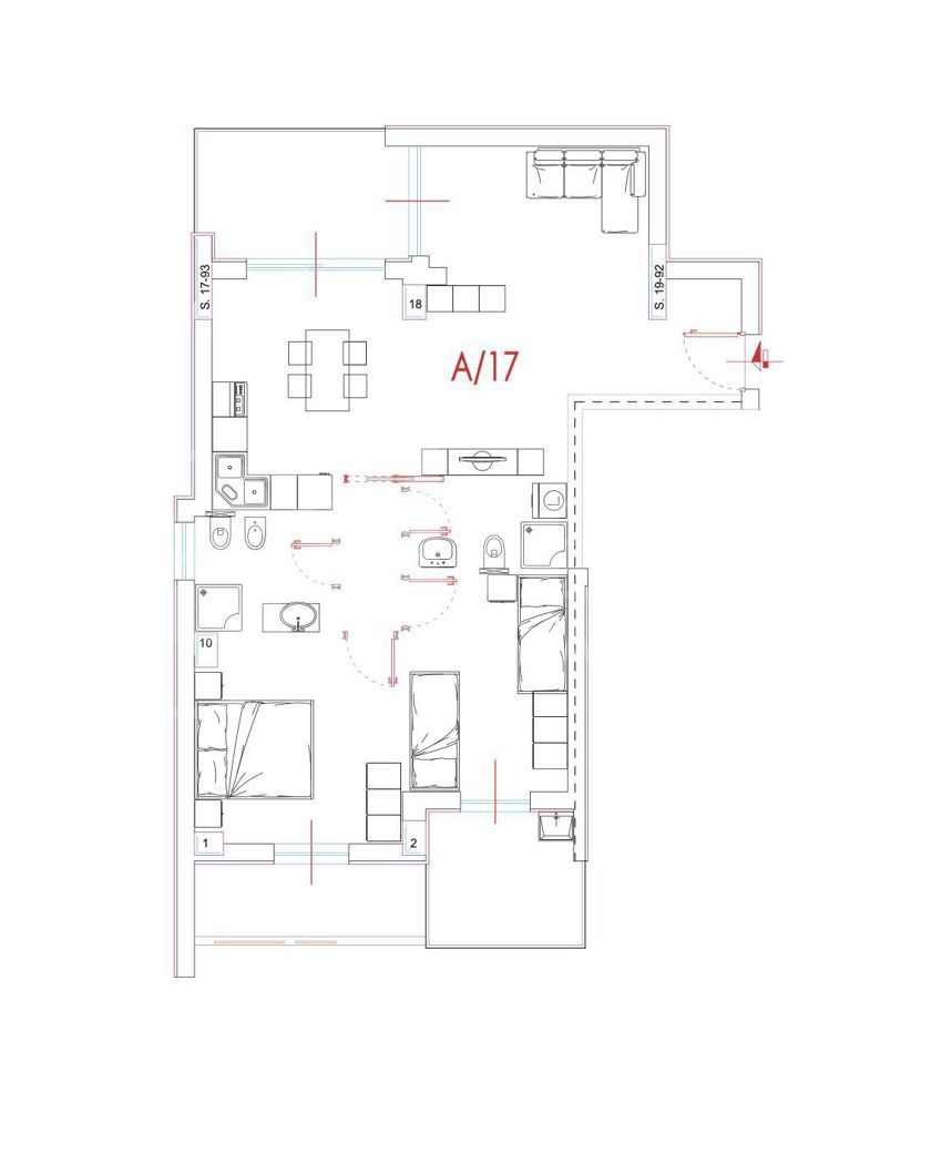 Con una superficie di 88 mq, l'appartamento offre un ampio soggiorno open space con cucina a vista, una camera matrimoniale, una cameretta e due bagni.