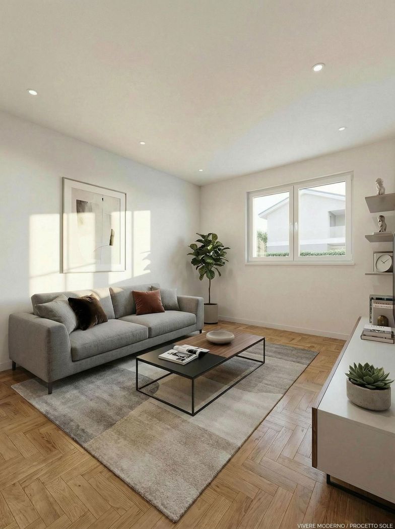 Nel cuore di Trofarello, in zona comoda e ben servita, con parcheggio, treno, bar, farmacia e altro ancora a portata di mano. appartamento di 3 locali e 1 bagno di 80 mq c.a., con finiture di alta qualit in palazzina del 2025, con ascensore, di: cucina a vista e soggiorno singolo, due camere da letto con due terrazzini, riscaldamento a pavimento, sistema ibrido caldaia a metano e pompa di calore.