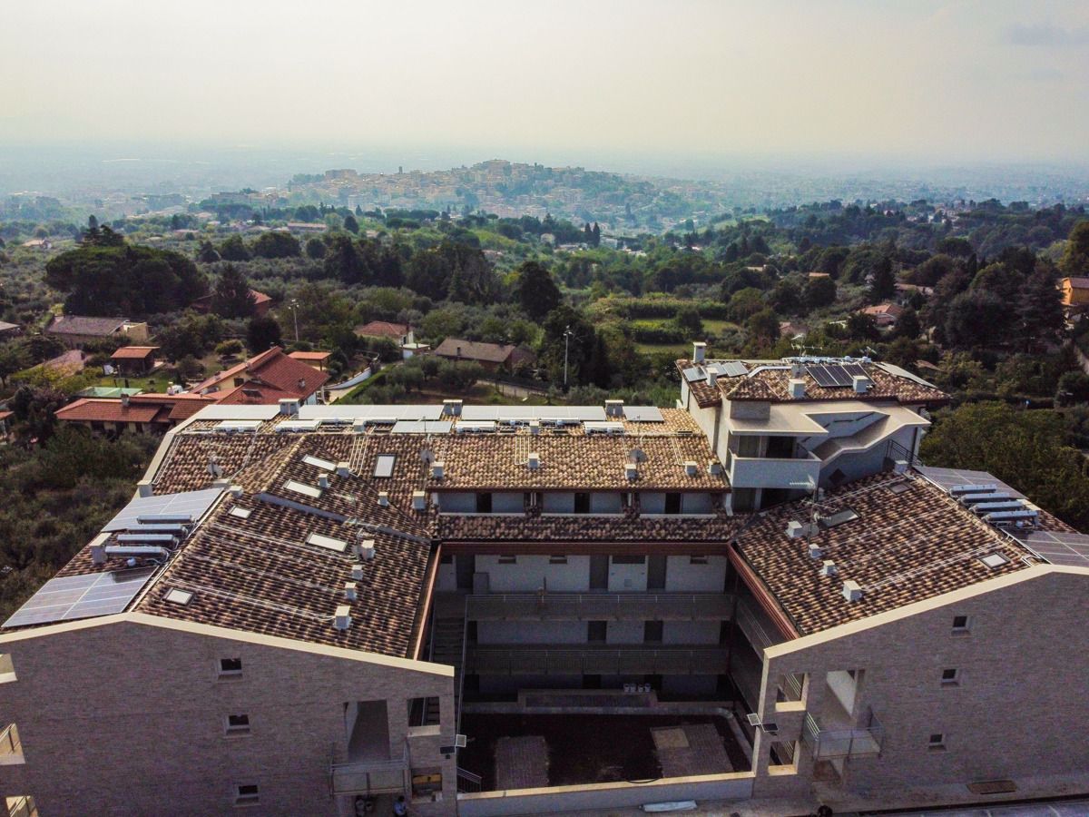 SPECIALE CANTIERE, a ridosso del centro di Velletri, in esclusiva zona signorile con posizione dominante e panoramica a 360°, sorge un nuovo e inatteso complesso residenziale: "Residence Belvedere Colle Giorgi", firmato con uno stile audace, eclettico, dinamico e funzionale, con materiali di eccellente qualit, grande cura dei dettagli e costruita nel rispetto dell'ambiente, con impianto fotovoltaico, solare termico, riscaldamento alimentato da stufa a pellet e pompa di calore.