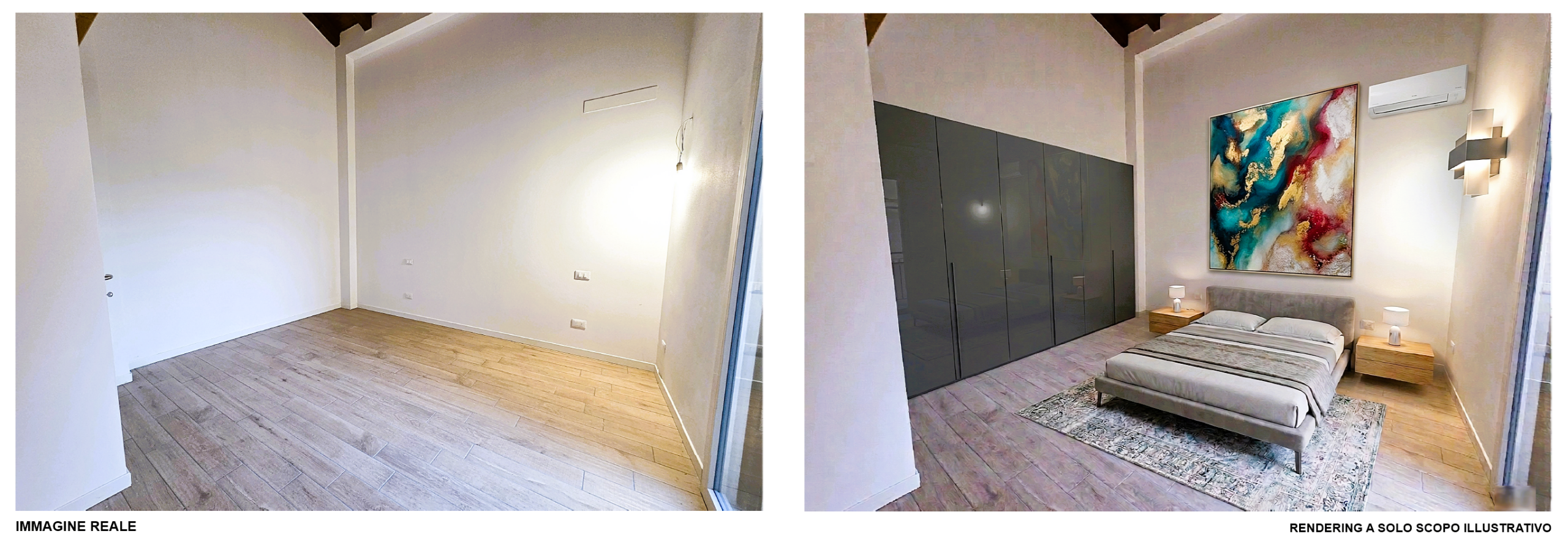 La zona notte, collegata da un pratico disbrigo armadiabile, comprende una camera matrimoniale, una camera media attualmente integrata nel soggiorno e un bagno finestrato con doccia.