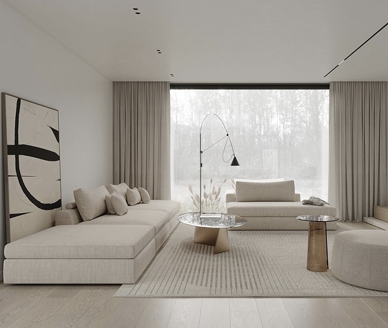Il soggiorno, ampio e accogliente, rappresenta il cuore della casa, uno spazio da vivere e condividere.