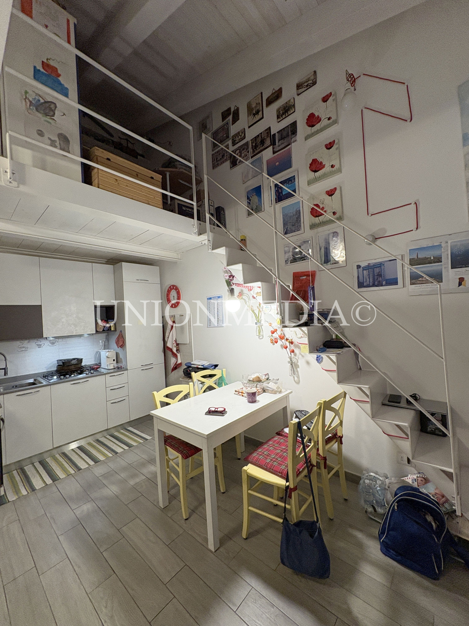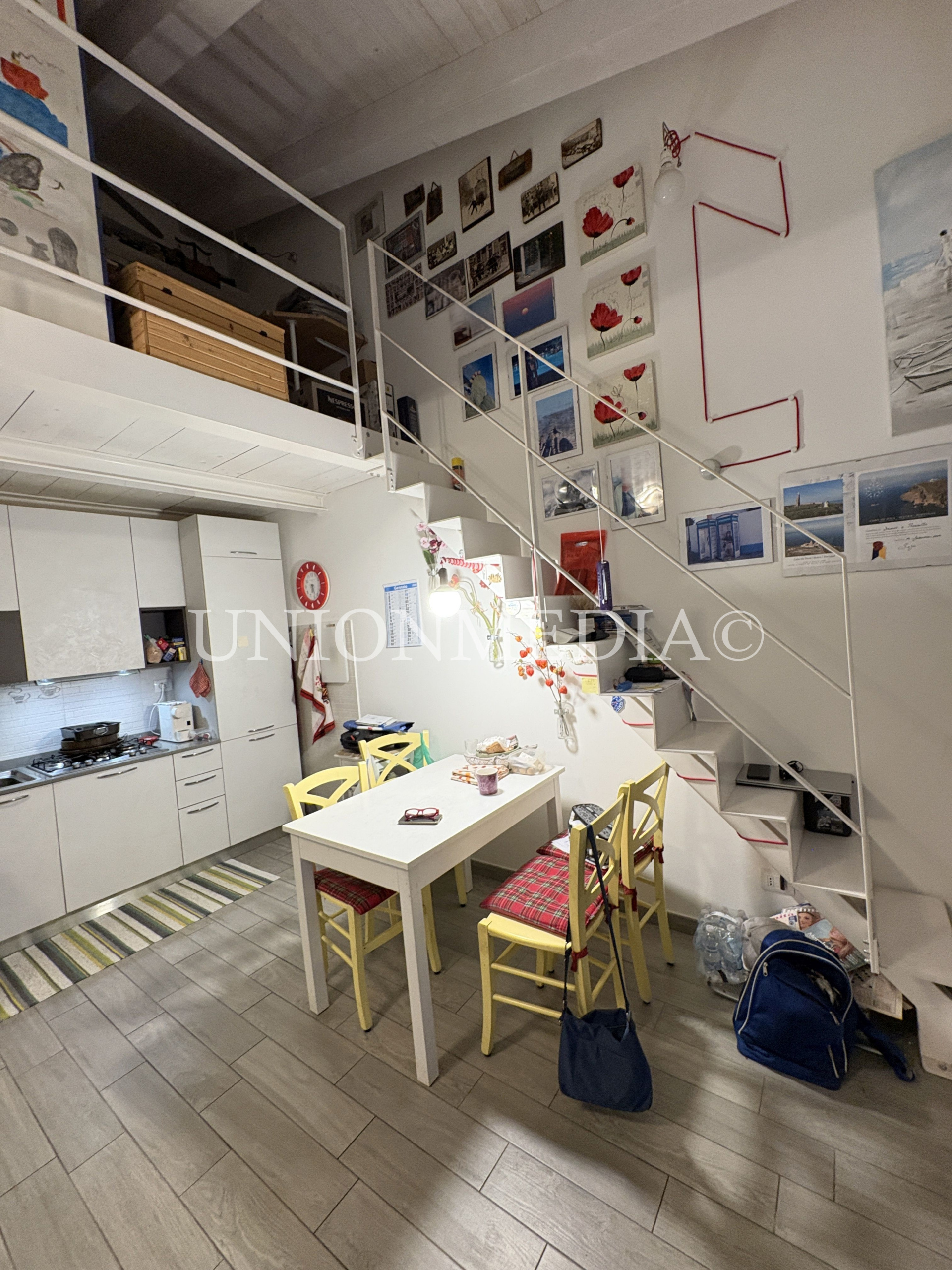 L'immobile è composto da spazioso soggiorno con zona cottura con affaccio su terrazzina, disimpegno, camera matrimoniale, bagno completo con doccia e finestra; soprastante soppalco in legno con buona altezza, con affaccio sulla zona giorno, raggiungibile con comoda scala di design.