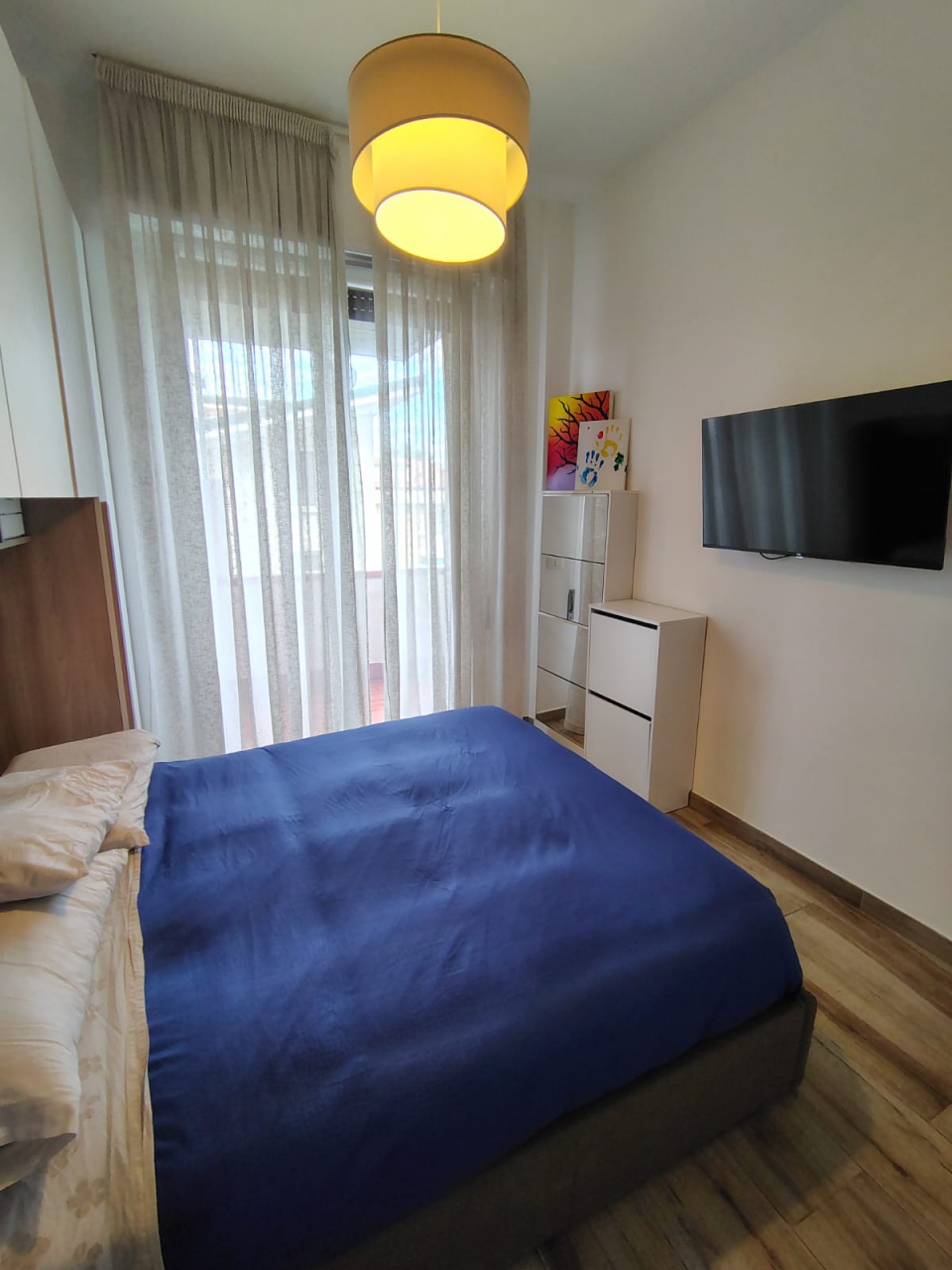 È così composto: Zona giorno: soggiorno con divano letto matrimoniale (2 posti letto) e balcone Cucina: cucina a vista Camera da letto: 1 camera matrimoniale con letto matrimoniale Bagno: 1 bagno completo POSTO AUTO riservato.