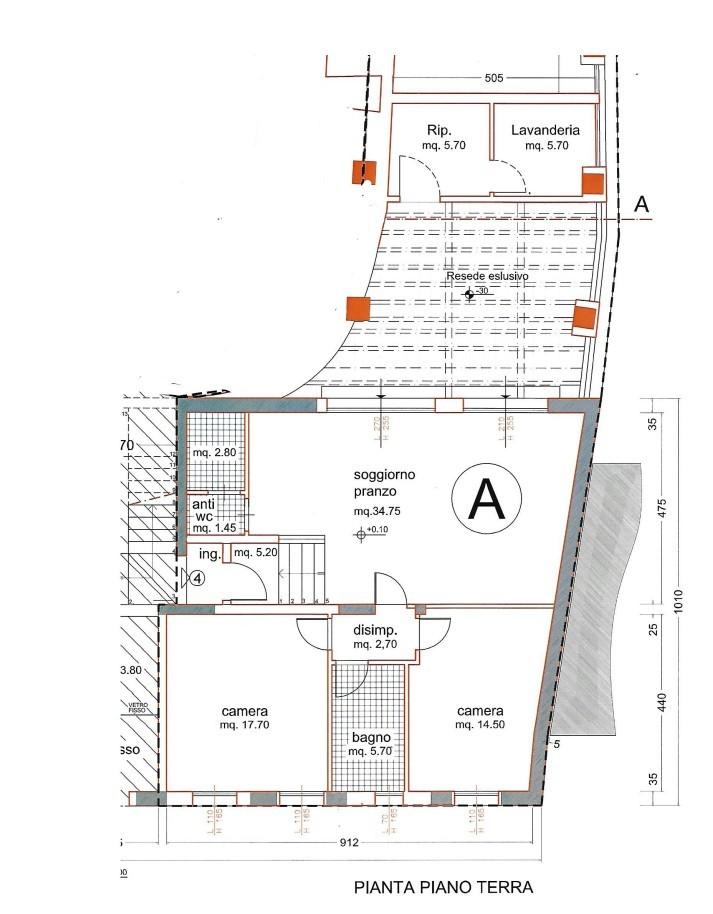L'ingresso è diretto nell'ampio soggiorno con angolo cottura di circa 35 mq che si affaccia sul resede esclusivo in parte coperto ideale da utilizzare come giardino d'inverno per poterlo vivere tutto l'anno, con angolo ripostiglio/lavanderia.