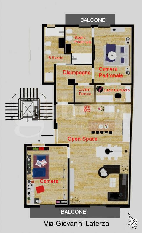 La zona notte comprende una camera matrimoniale dotata di cabina armadio e bagno privato, un secondo bagno e un comodo ripostiglio, inoltre, presente una seconda camera da letto con un secondo ingresso indipendente, ideale per chi desidera organizzare un ambiente professionale o studio all'interno della propria abitazione Lappartamento gode di una doppia esposizione, con affaccio interno ed esterno.