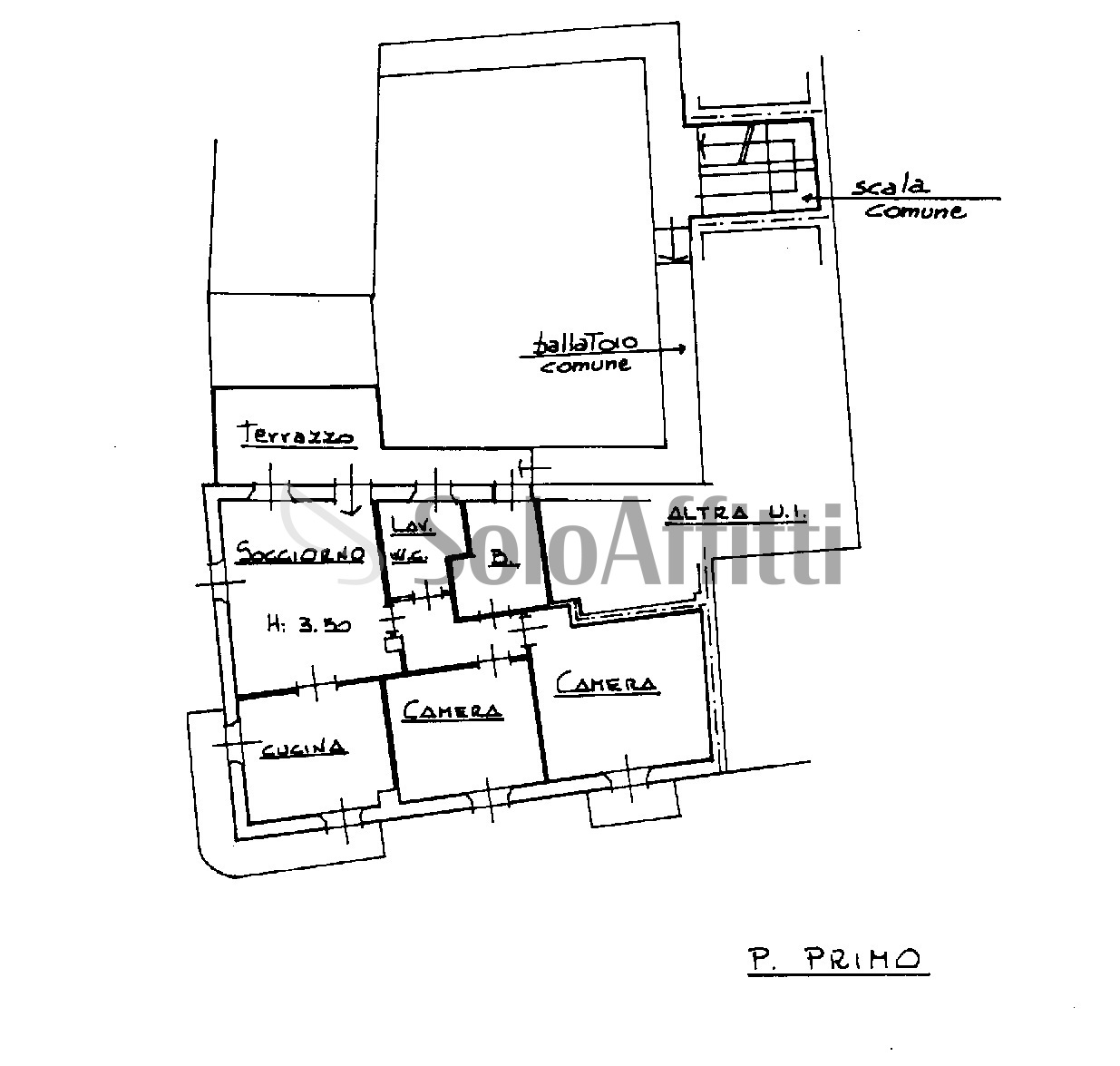 In corte ristrutturata, al 1° piano affittiamo TRILOCALE non arredato, composto da soggiorno, cucina abitabile, due camere da letto e doppi servizi.