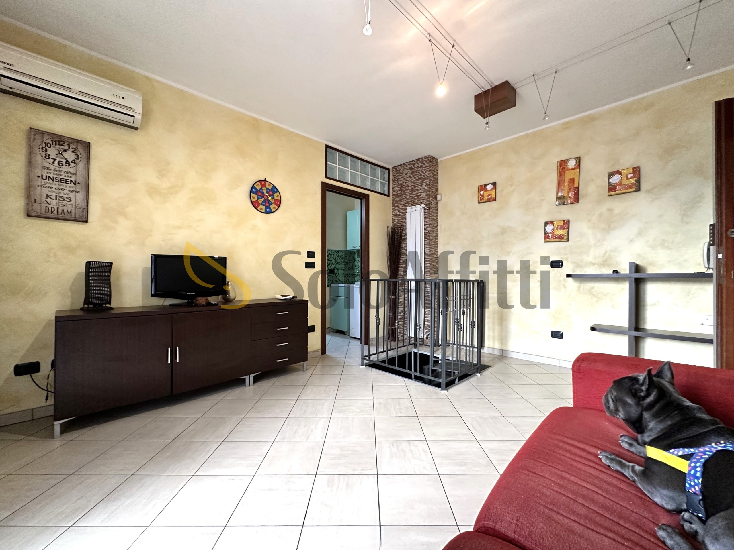 Limmobile, disposto su due livelli collegati da scala interna, all'interno è così distribuito: ingresso su zona living con accesso al balcone perimetrale, cucina abitabile, angolo lavanderia e bagno con cabina doccia al piano terra/rialzato, disimpegno, camera matrimoniale, ripostiglio finestrato e bagno al piano sottostante.