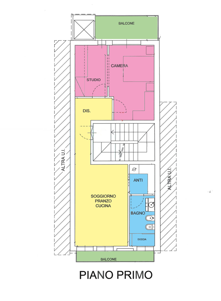 Luminoso soggiorno pranzo, camera matrimoniale, studio, bagno finestrato e due balconi.