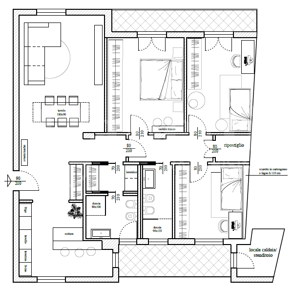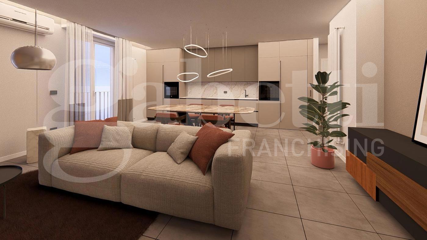 Lintervento sullimmobile in oggetto prevede principalmente la diversa distribuzione degli spazi interni, con possibilit di soggiorno/cucina in open space, con accesso ad un balcone con bellissima vista sul Duomo, oppure progetto con i due ambienti separati, con accesso ad un terrazzino coperto dalla cucina.