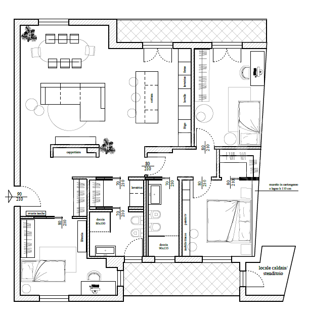 L'appartamento si compone poi di un locale accessibile dal terrazzino, utilizzabile a piacere come lavanderia/cucina esterna/locale tecnico.