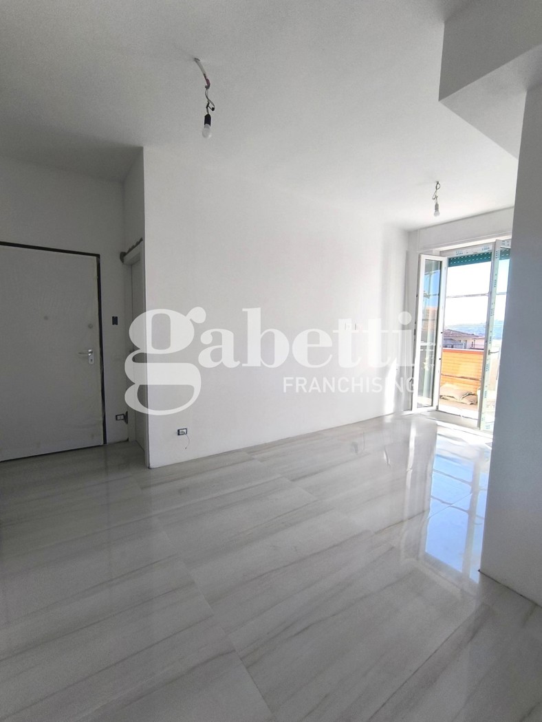 L'appartamento risulta composto da una sala con angolo cottura a vista open space, una camera matrimoniale, una camera singola e un bagno finestrato, oltre balcone e loggia.