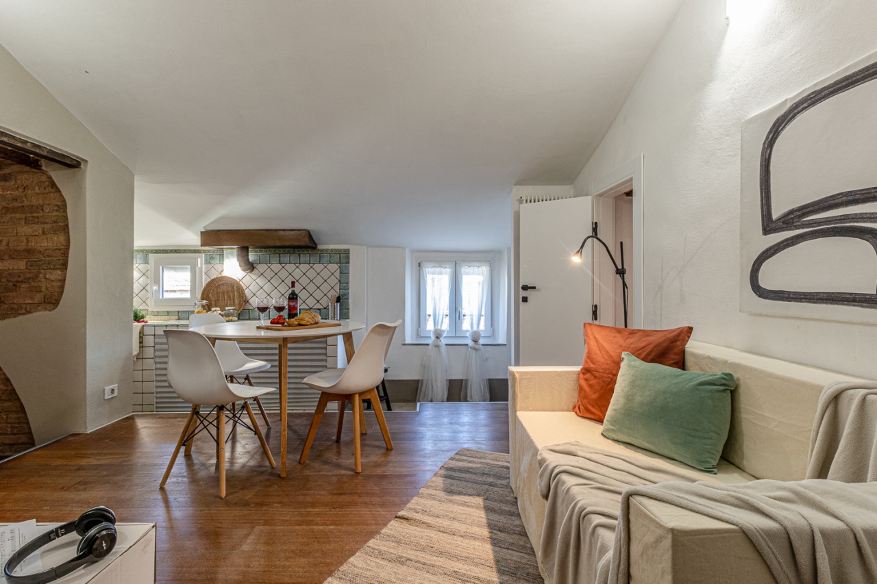 Composto da zona giorno con cucina in muratura, camera matrimoniale, camera singola (perfetta anche come studio), bagno con lucernario.