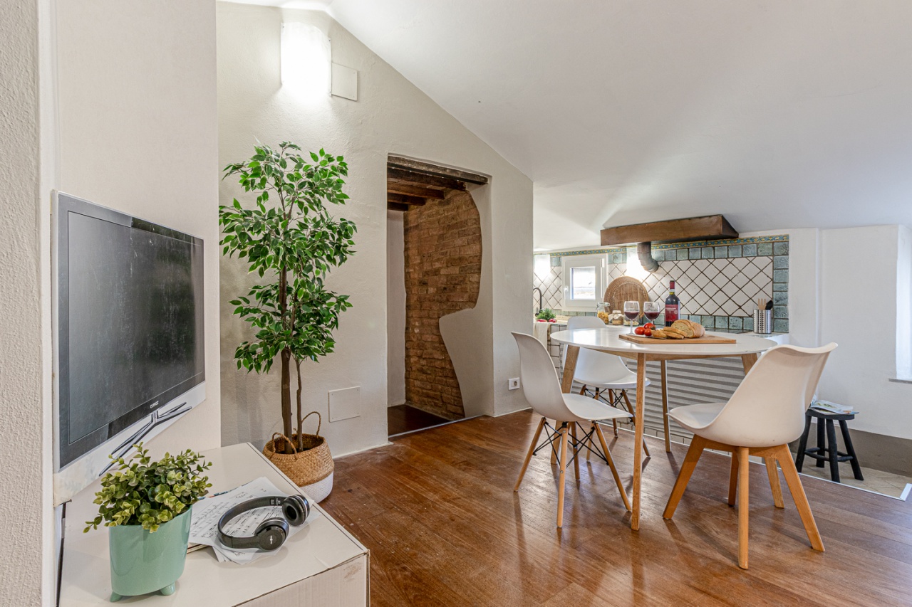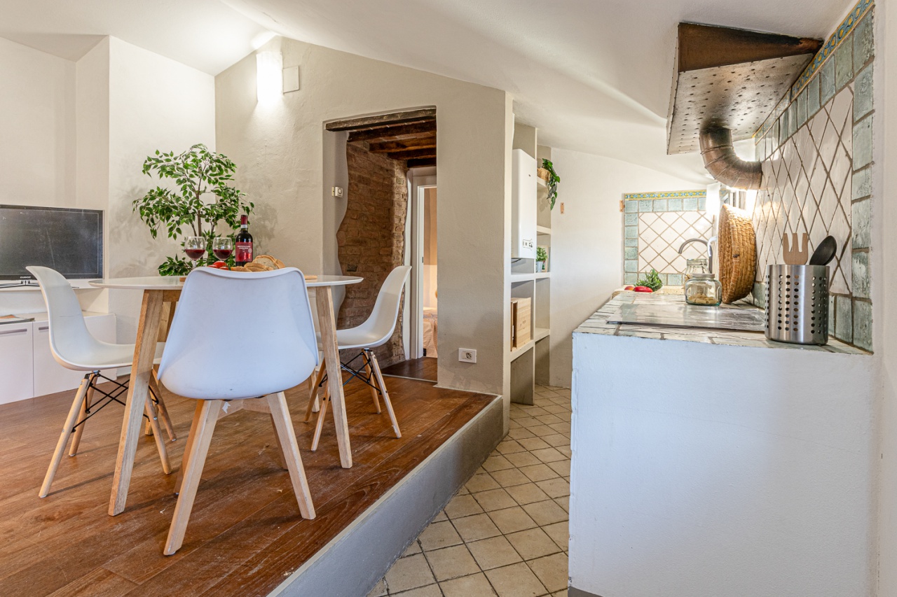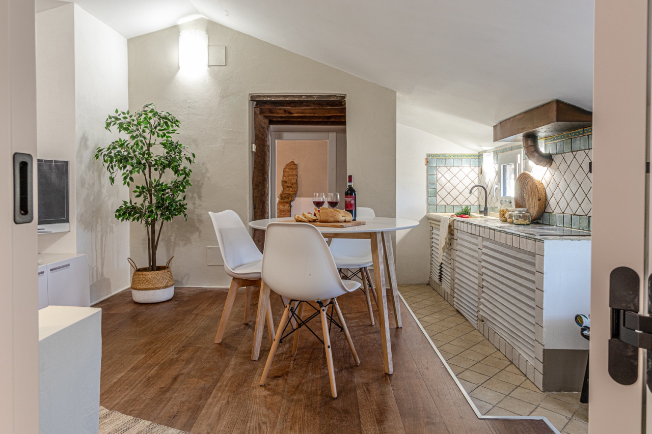 Composed of a living area with a built-in kitchen, double bedroom, single bedroom (also perfect as a study), bathroom with skylight.