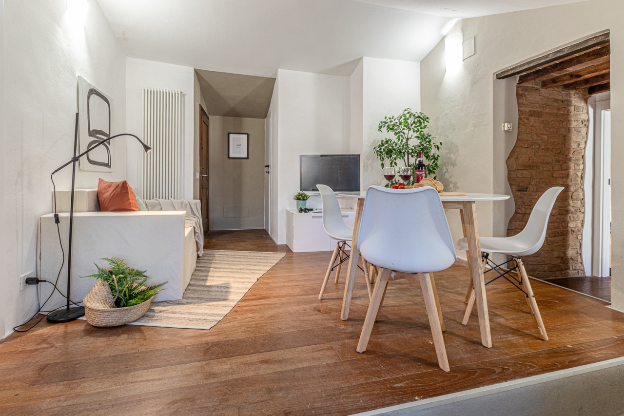 EN: Apartment on the second and top floor of an old building within the walls of the historic center in a limited traffic zone (ZTL), located near the urban route of the Via Francigena.