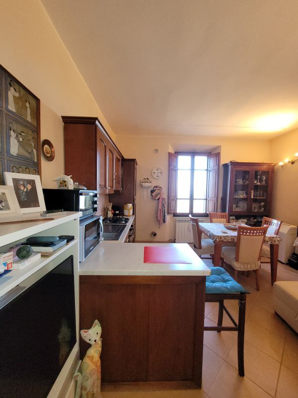 Gavorrano, con ingresso al piano terreno su vicolo del centro storico, appartamento al 1 piano composto da ampio soggiorno con parete cottura che rimarrà attrezzata come da foto, disimpegno con bagno, camera, studio.