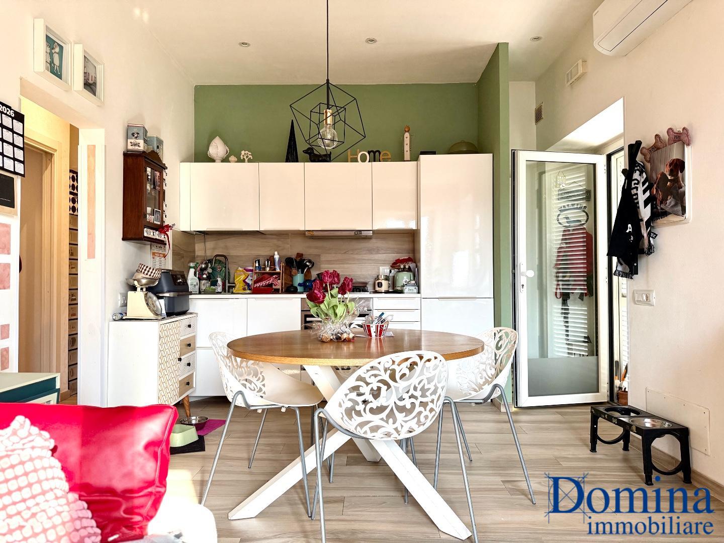 Al suo interno si viene accolti da soggiorno con cucina vista - ambiente luminosissimo che gode di duplice esposizione - proseguendo troviamo il disimpegno notte, la camera matrimoniale ed un locale attrezzabile come locale armadi o studio.