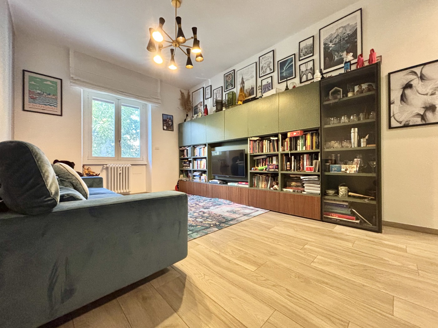 Per quanto riguarda le finiture dell'appartamento, la pavimentazione omogenea in tutte le stanze, ad eccezione del bagno, dove sono state utilizzate piastrelle in ceramica di design che conferiscono un tocco di eleganza.