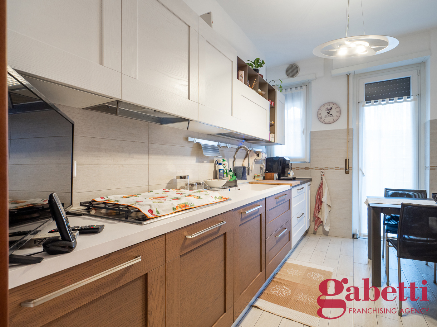 Lingresso conduce a un ampio soggiorno accogliente, affiancato da una cucina abitabile; la zona notte comprende due camere matrimoniali di generose dimensioni, un bagno finestrato con doccia ed un comodo ripostiglio.