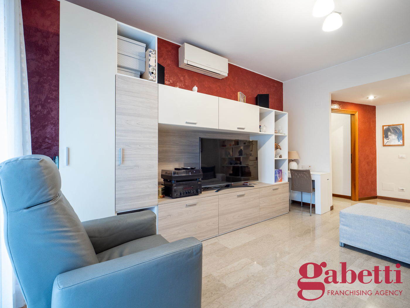 Le finiture e le dotazioni garantiscono comfort e sicurezza: aria condizionata con pompa di calore, tende da sole sui due balconi, con sensore sole e vento, infissi con doppi vetri, impianto di allarme e porta blindata.