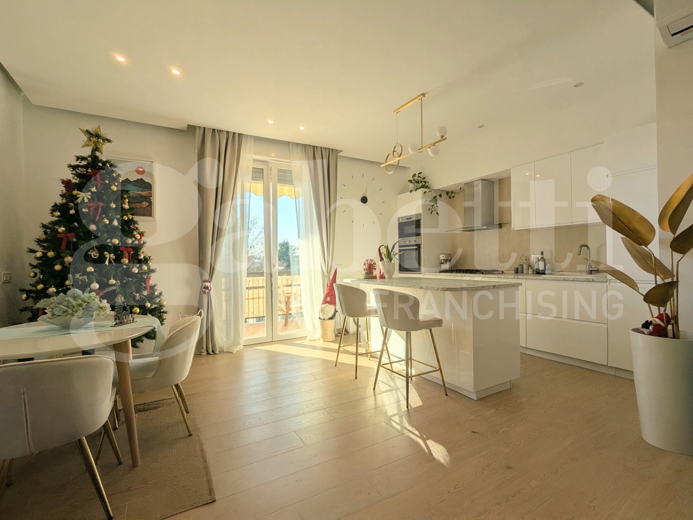 In palazzo recentemente riqualificato con intervento Superbonus, disponiamo di appartamento, completamente ristrutturato nel 2025, al terzo piano con ascensore con ingresso, ampio soggiorno con parete cottura e penisola, terrazzino abitabile e balcone, disimpegno notte, due camere matrimoniali e bagno.