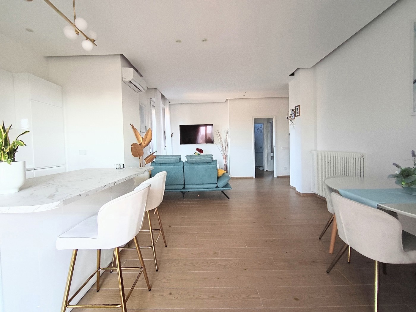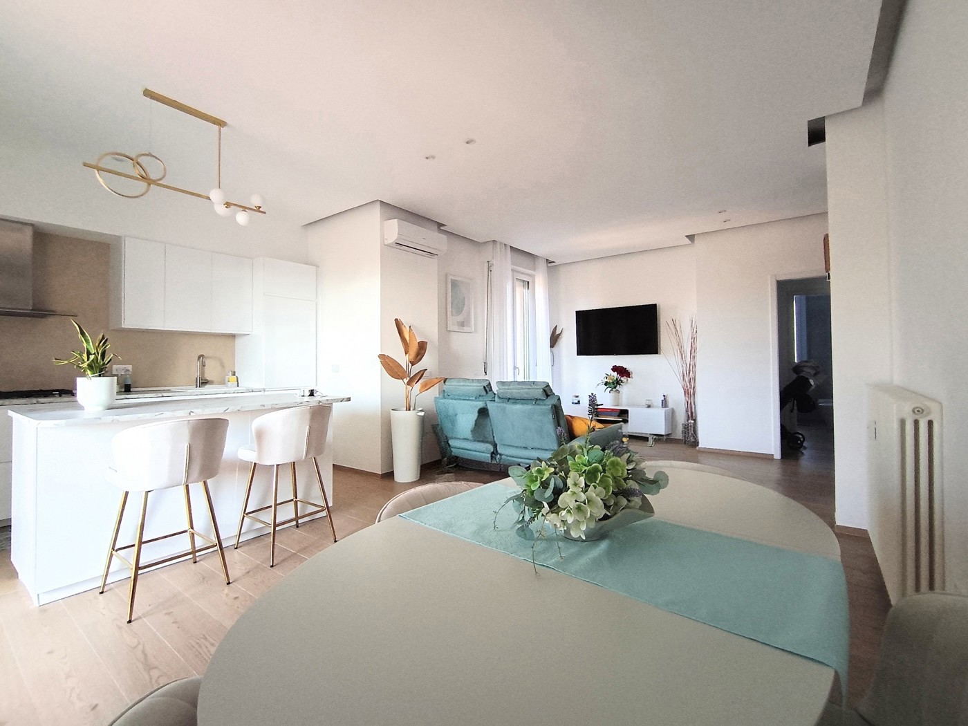 In palazzo recentemente riqualificato con interventi di inserimento cappotto esterno, rifacimento tetto, sostituzione caldaia centralizzata con impianto di ultima generazione, ascensore nuovo, disponiamo di appartamento, completamente ristrutturato nel 2025, al terzo piano con ascensore con ingresso, ampio soggiorno con parete cottura e penisola, terrazzino abitabile e balcone, disimpegno notte, due camere matrimoniali e bagno.