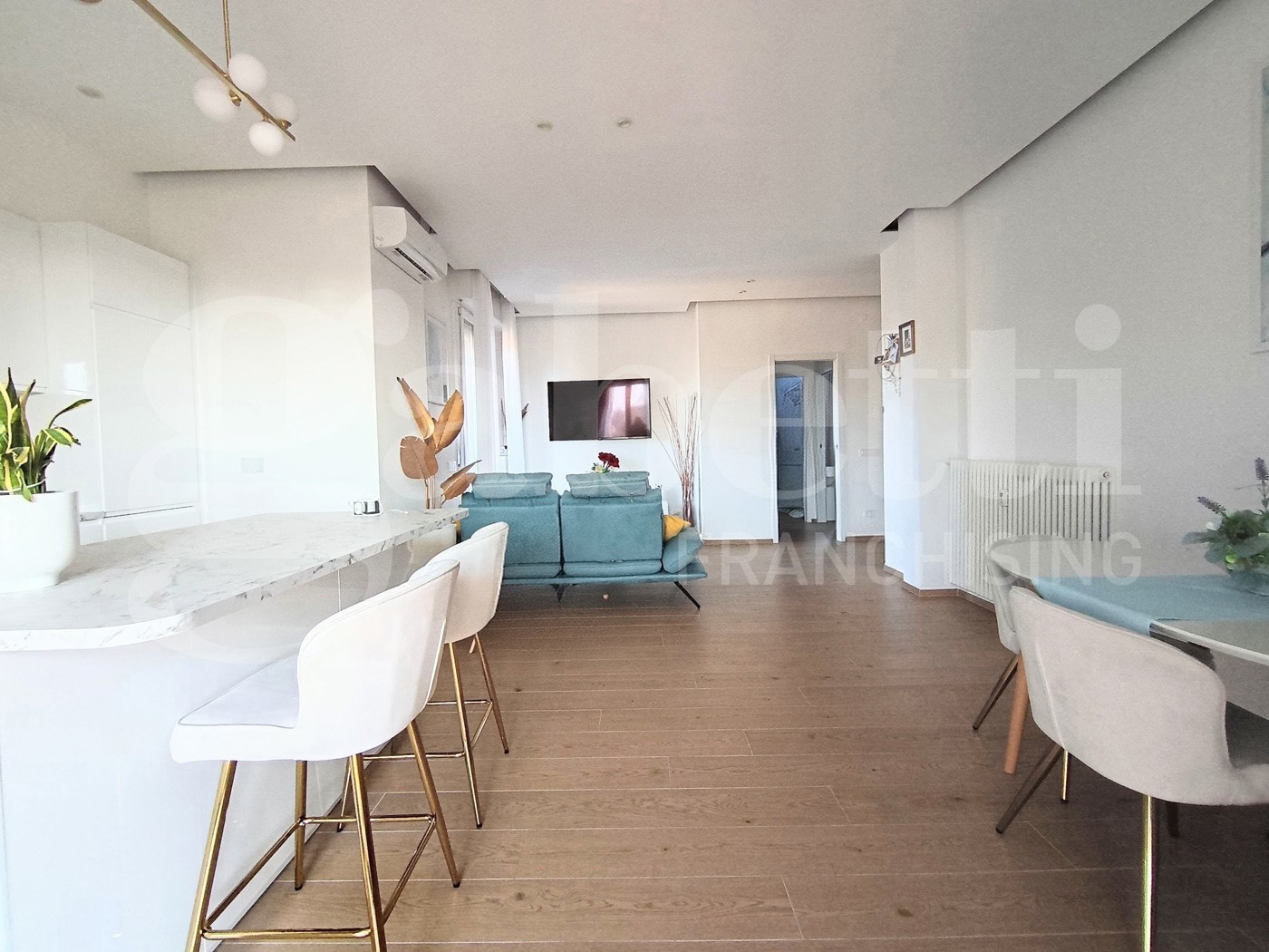 In palazzo recentemente riqualificato con interventi di inserimento cappotto esterno, rifacimento tetto, sostituzione caldaia centralizzata con impianto di ultima generazione, ascensore nuovo, disponiamo di appartamento, completamente ristrutturato nel 2025, al terzo piano con ascensore con ingresso, ampio soggiorno con parete cottura e penisola, terrazzino abitabile e balcone, disimpegno notte, due camere matrimoniali e bagno.