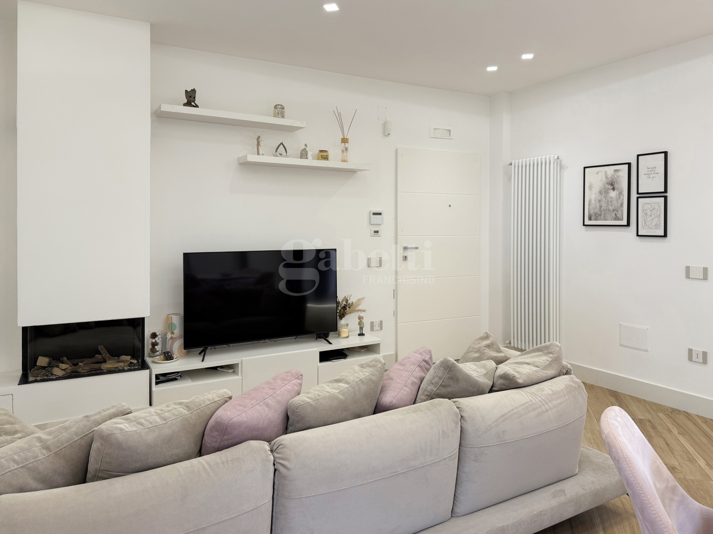 Lingresso dellappartamento introduce in un living ampio e luminoso, caratterizzato da linee contemporanee e spazi ben distribuiti, dotato di impianto dallarme e cronotermostato digitale per una gestione ottimale del comfort e della sicurezza.