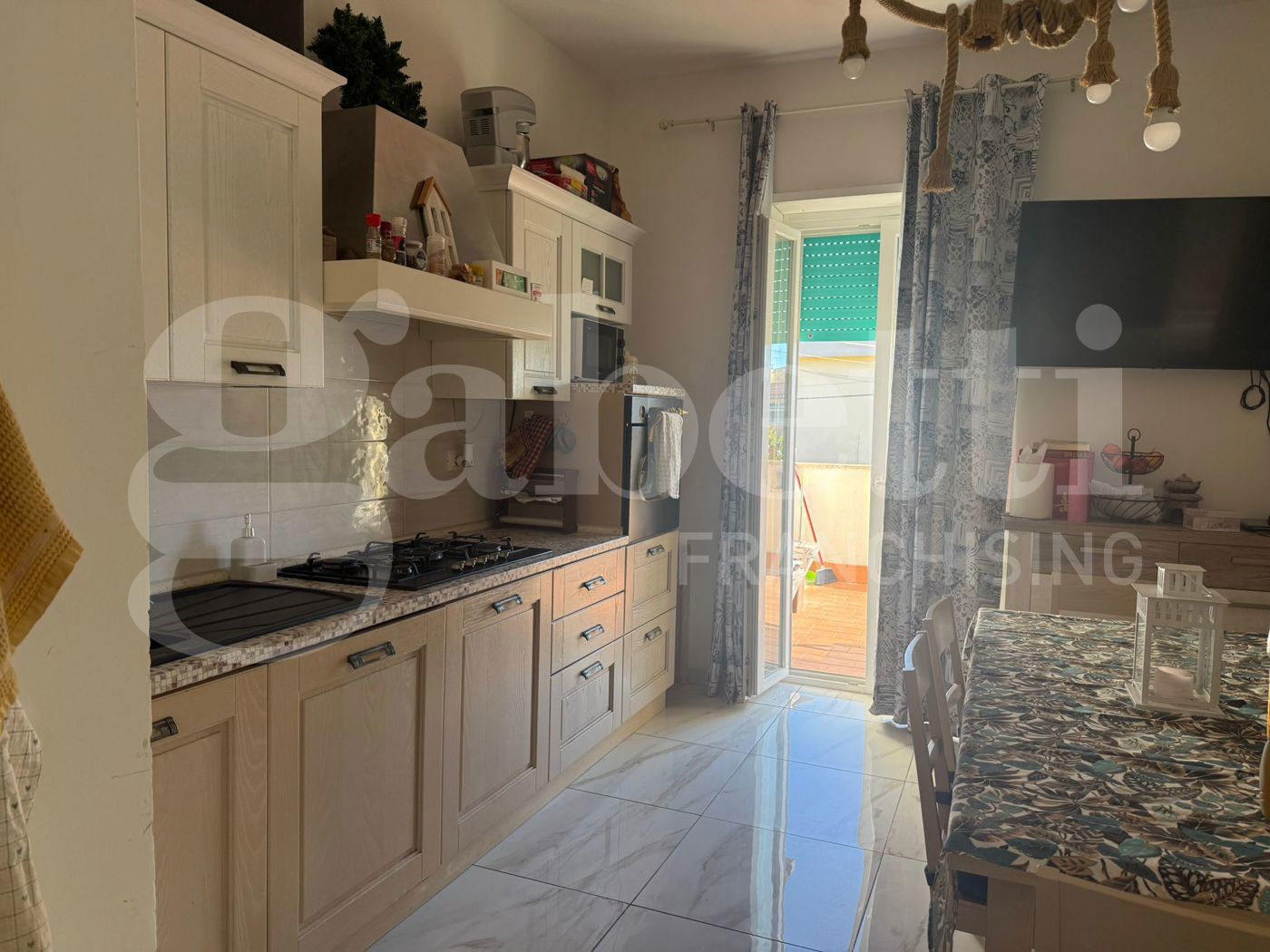NETTUNO- SAN GIACOMO: Proponiamo in vendita un grazioso appartamento ristrutturato nel 2022 nell'impianti e nella mutratura, con un esclusivo terrazzo di 22 mq. Posto al primo piano in palazzina di sole 4 unit abitative, l'immobile misura circa 60 mq ed offre un luminoso soggiorno con cucina a vista, camera matrimoniale con cabina armadio, cameretta ed bagno finestrato con box doccia.