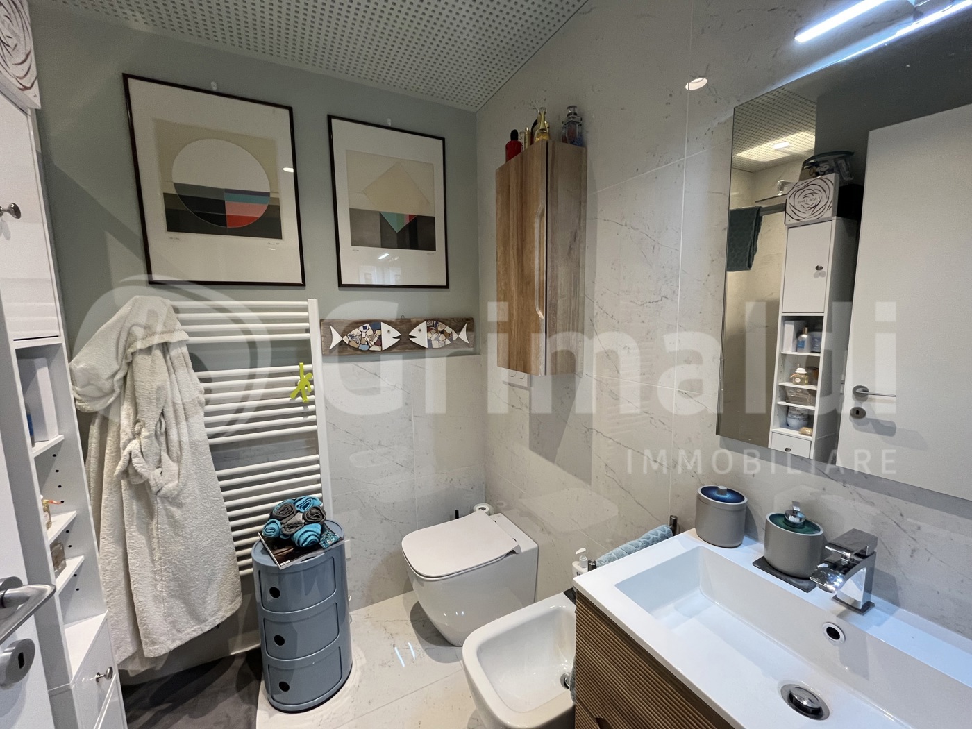 Ingresso, soggiorno luminoso e armoniosamente collegato allangolo cottura con arredo su misura di ottima qualit, piccolo disimpegno zona notte con 2 camere da letto di cui una matrimoniale e una singola con terrazzino, 2 bagni con doccia arredati e rifiniti con materiali di qualit superiore.