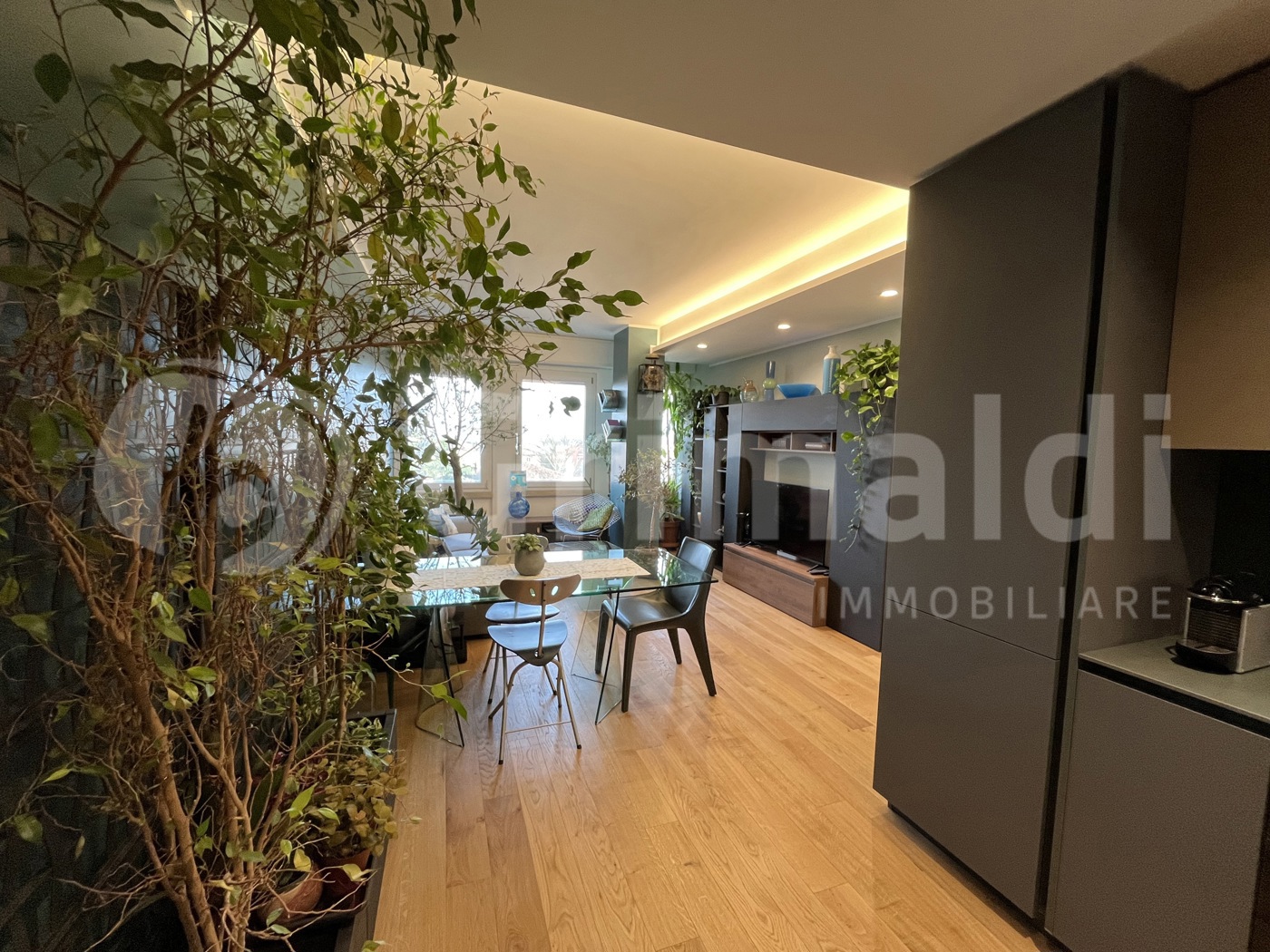 La ristrutturazione ha previsto finiture di pregio: cappotto interno, infissi con vetrocamera, avvolgibili automatizzati, zanzariere, pavimenti in legno di rovere, termostato indipendente in ogni stanza e illuminazione con faretti a LED a luce diffusa in tutti gli ambienti.