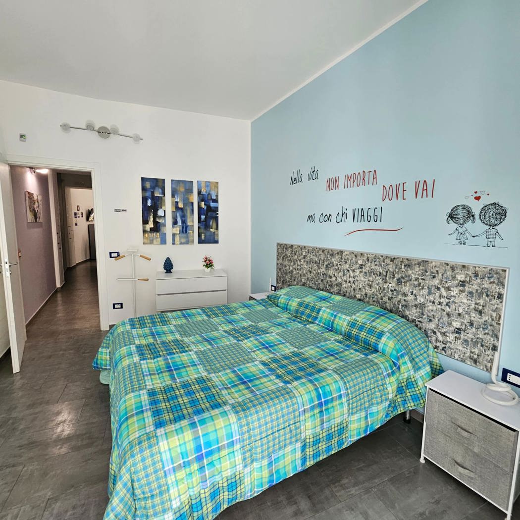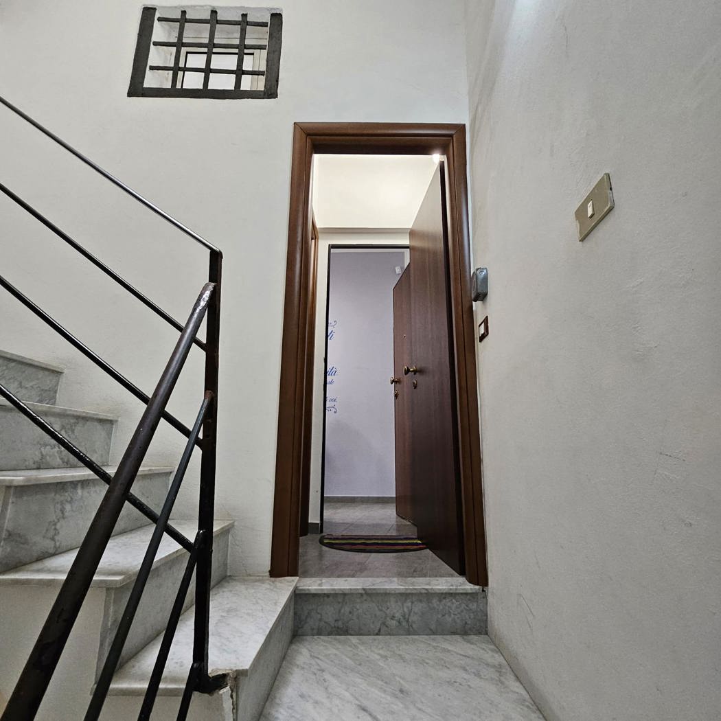 L'appartamento dispone di un luminoso ingresso che conduce alla cucina-soggiorno con balconcino interno, perfetto per momenti di relax.