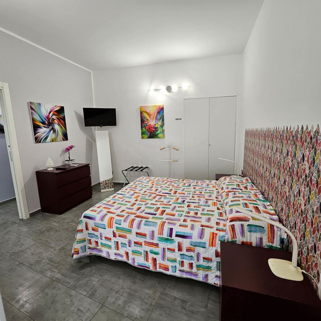 Le due camere da letto vantano entrambe un balcone con vista su via Chiavettieri, mentre il servizio e i ripostigli completano la funzionalit degli spazi.
