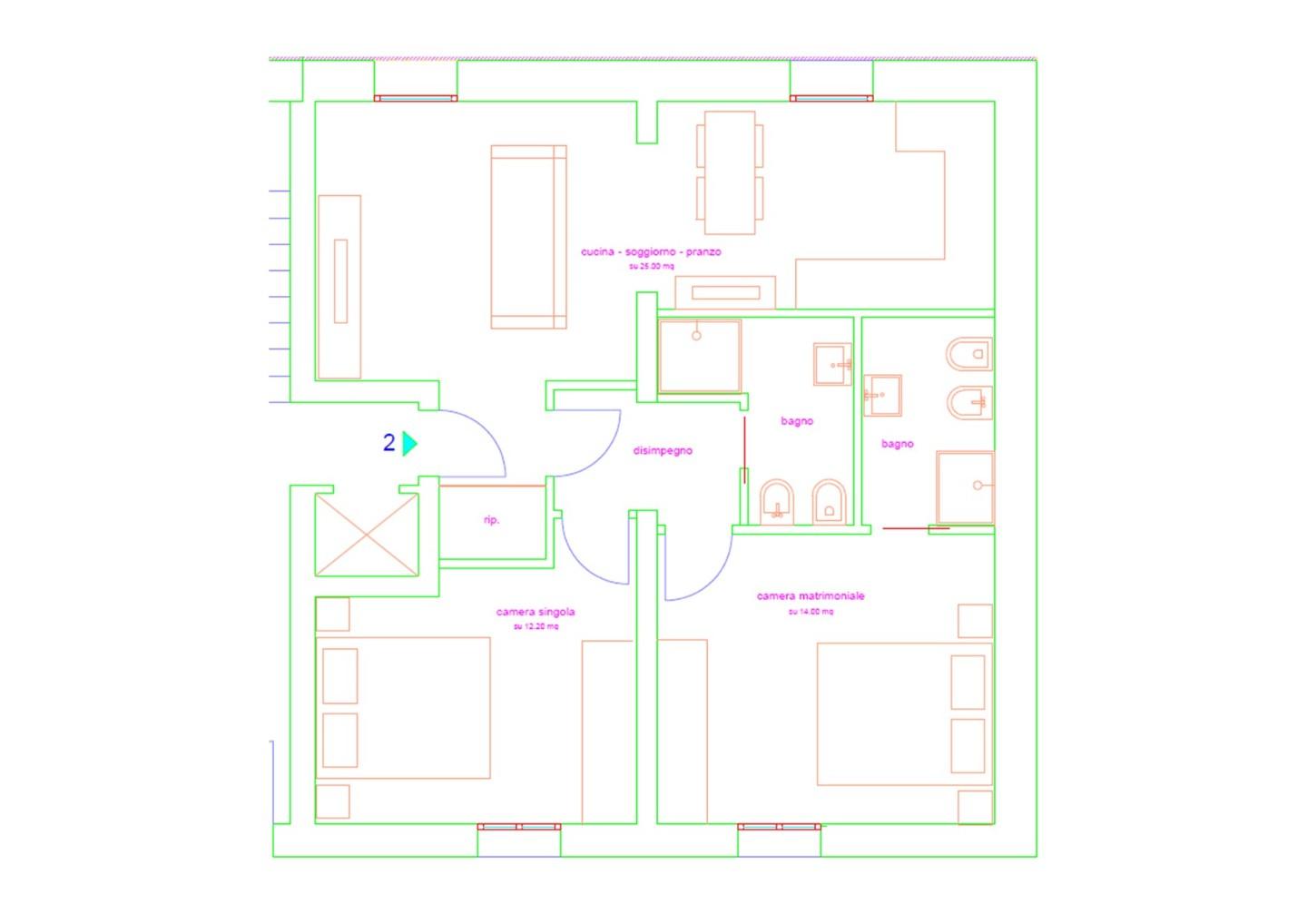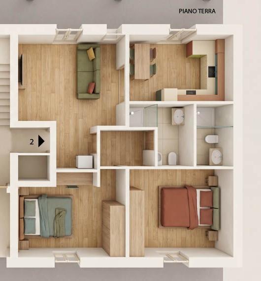 Limmobile è composto da: ingresso, ampia zona giorno con angolo cottura e accesso diretto al resede, ripostiglio, disimpegno notte, camera matrimoniale con bagno privato, camera singola, e secondo bagno.