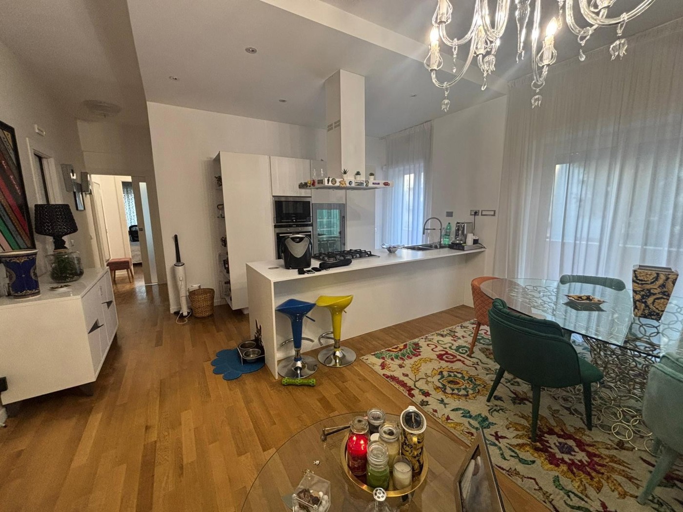 Composizione: Dall' ingresso si accede alla zona giorno composta da soggiorno con cucina all'americana con penisola, servizio con finestra e vasca Jacuzzi, comodo ripostiglio con zona lavanderia ed ampia balconata.